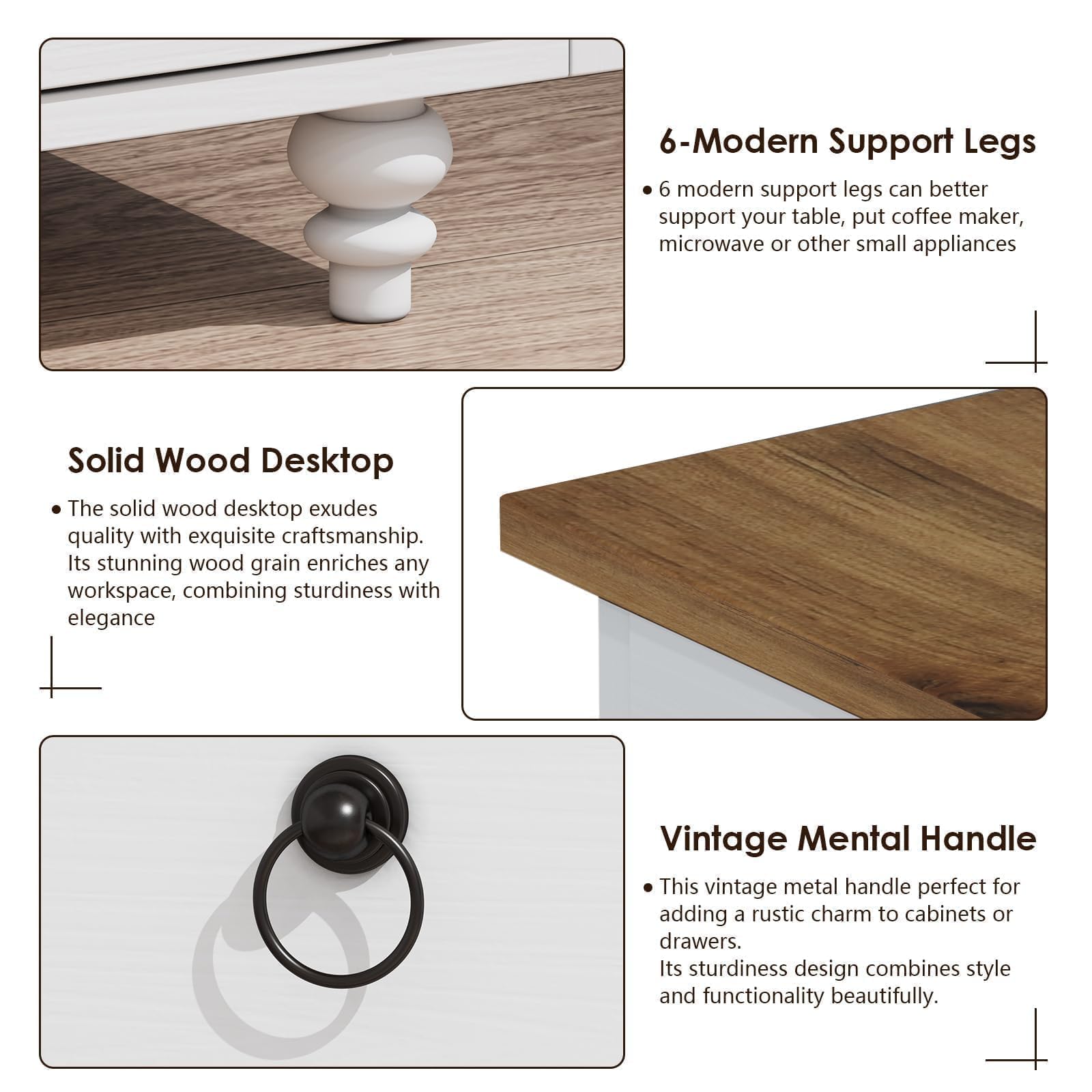 - Modern Buffet Cabinet: Kitchen cabinets with countertop features a modern design that complements the interior decor. Rustic walnut tabletop and vintage metal handles, white buffet cabinet adds a touch of elegance to your space and enhances overall aesthetic appeal