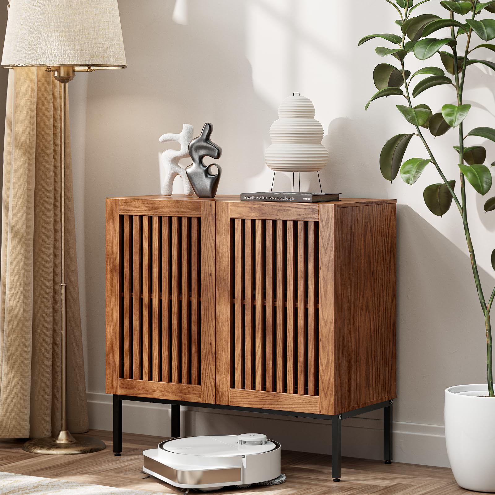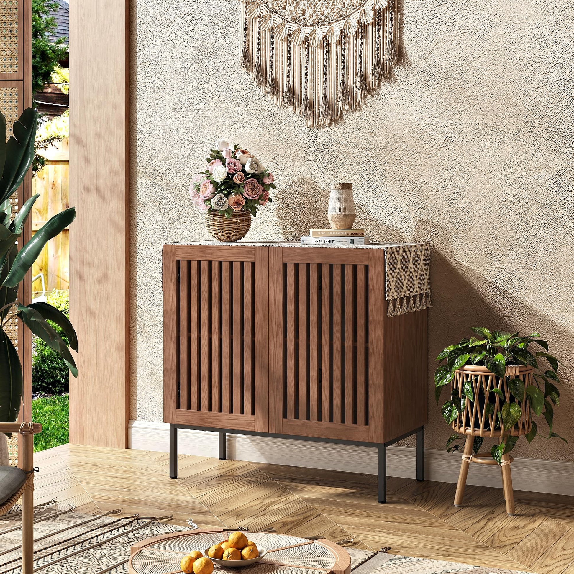 - Unique Design: The 31.5-inch brown storage cabinet combines natural style with modern elegance. The grille-striped doors and clean lines make it an ideal addition to any home decor, whether you're decorating your kitchen, dining room, or living room
