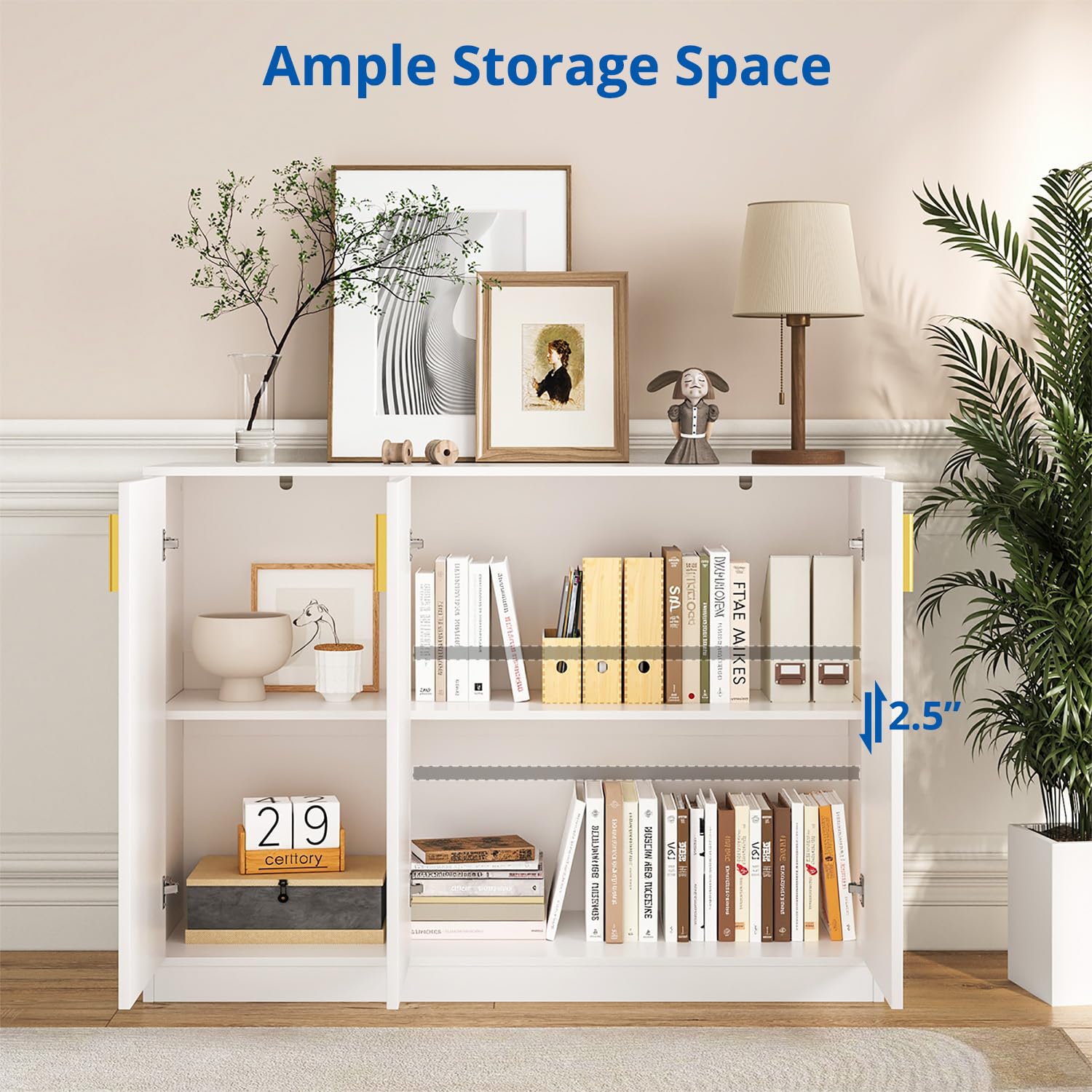Buffet Cabinet with Doors and Shelves, 35.4" Tall Wood Sideboard Console Table for Kitchen, Living Room, Entryway, or Hallway, White