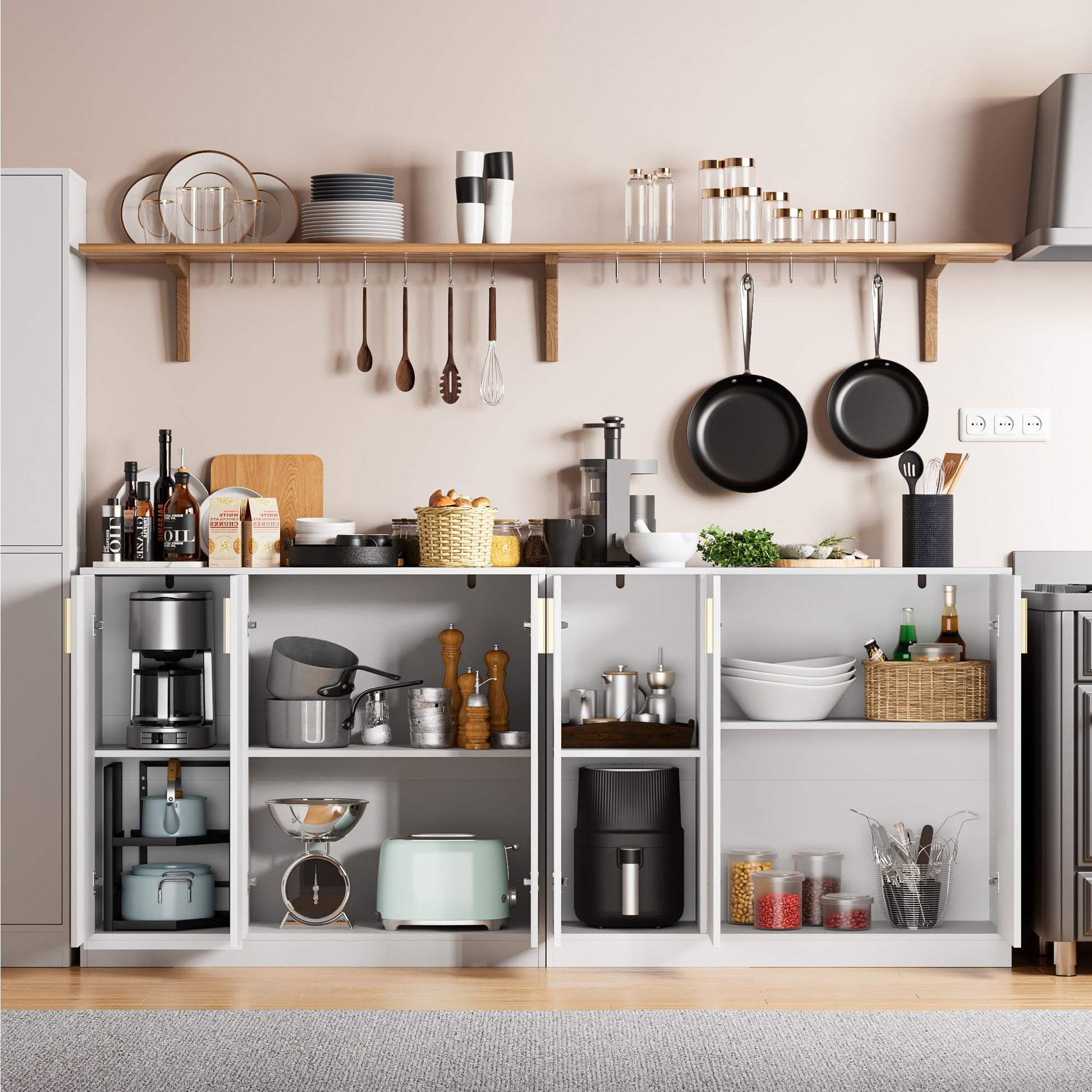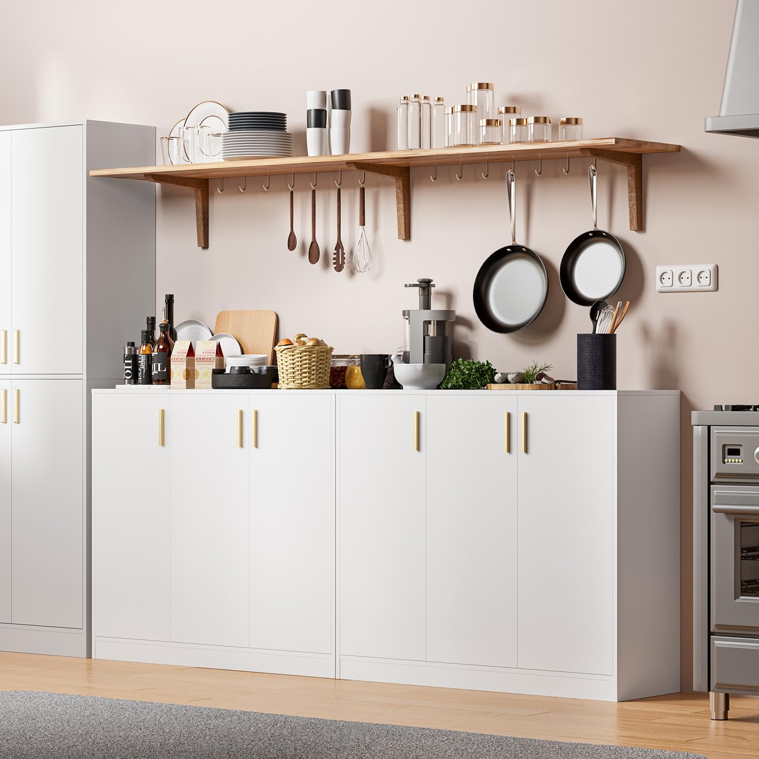 - 【Modern Sideboard】Modern style, multipurpose use. Simple lines and pure colors of our buffet cabinet can satisfy both aesthetic and functional requirements, making it an ideal choice for decorating a room. In addition, this sideboard cabinet can not only be placed in the kitchen for kitchenware, but also suitable for most occasions in the living room, dining room and entryway
