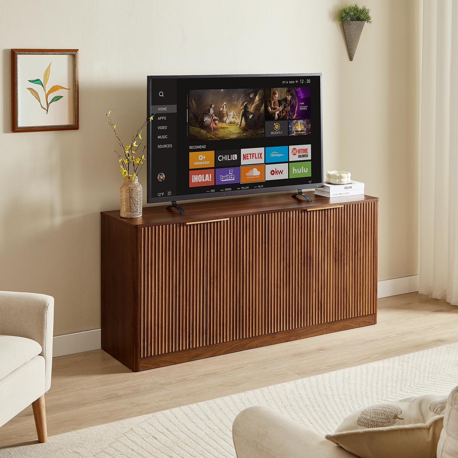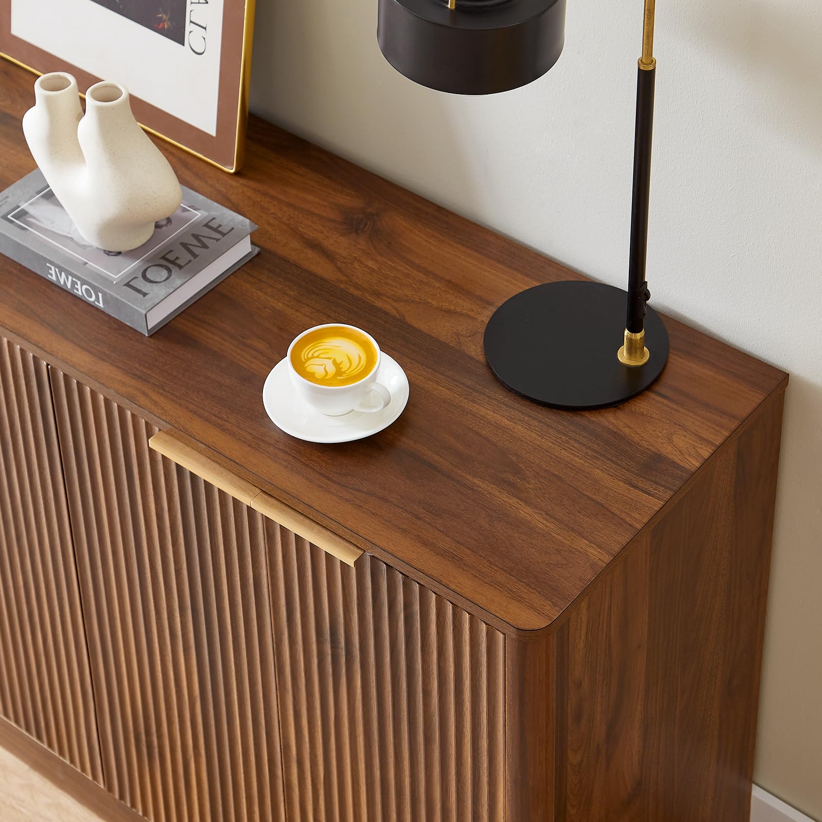 - 【Elegant Fluted Style】Showcasing a sleek fluted design with a warm walnut finish, this sideboard brings modern sophistication to dining rooms, kitchens, or living spaces