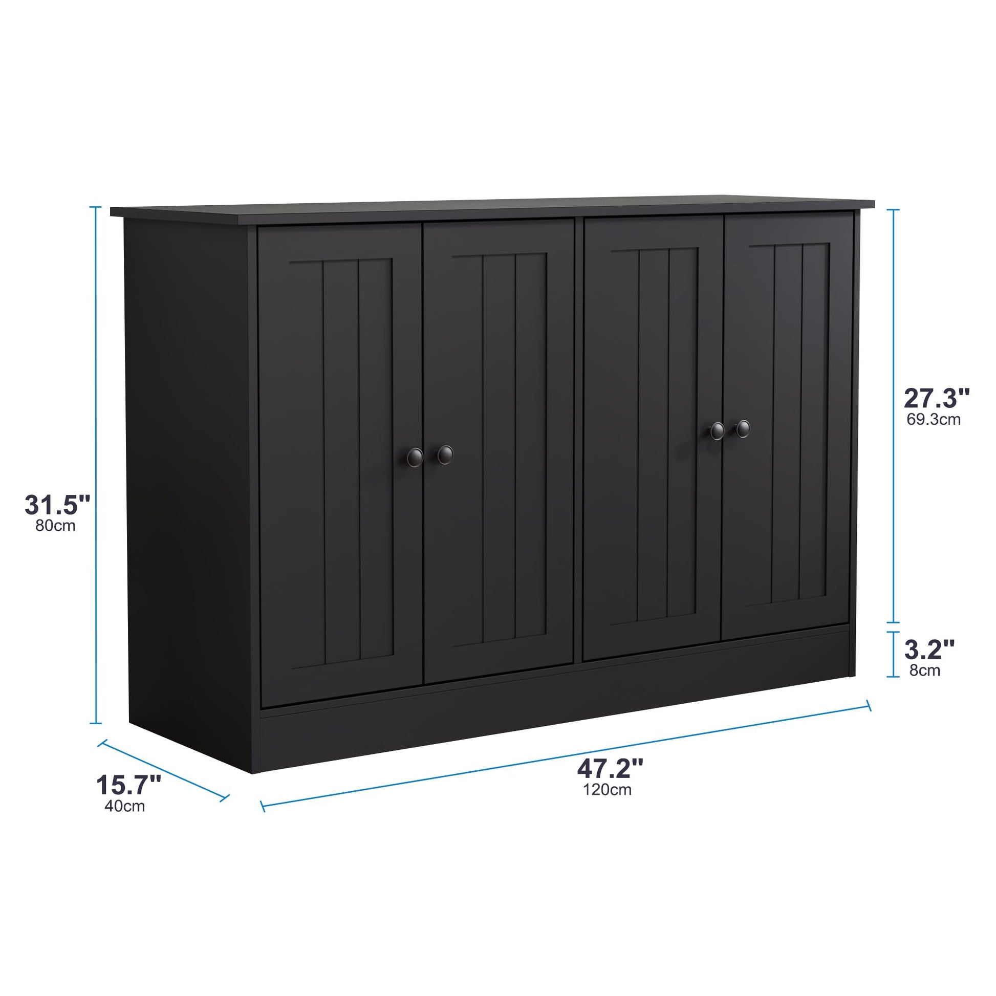 - 【Ample Storage Capacity & Adjustable Shelves】- This modern buffet cabinet features 4 doors, providing ample storage space for your belongings. There are 3 height-adjustable shelves inside, allowing you to customize the storage space according to your needs. This cabinet maximizes storage potential, making it the ideal organizational solution for any space, with its dimensions of 47.2"W × 15.75"D × 31.5"H