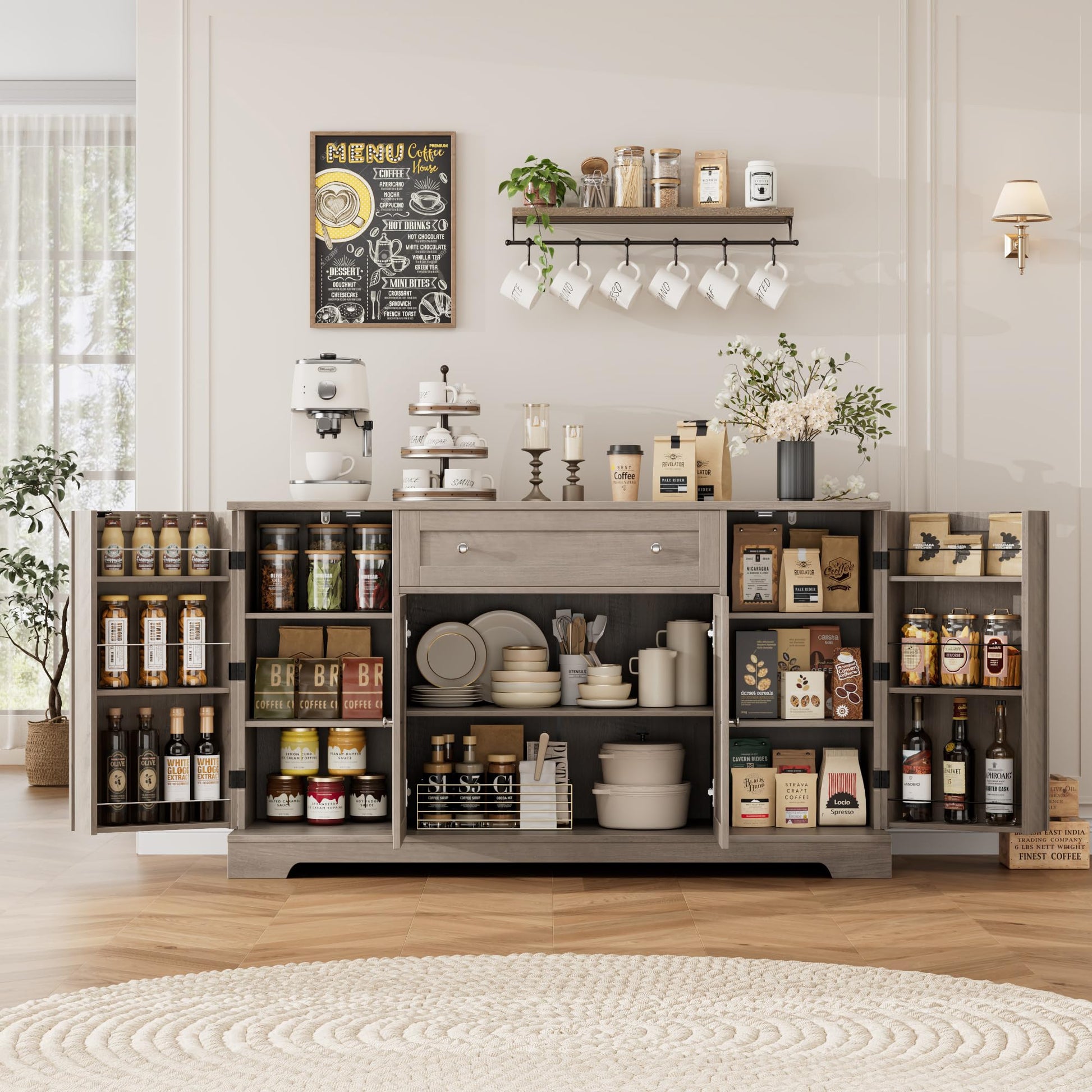 - Versatile Cabinet: The kitchen buffet makes a versatile addition to any loft apartment. Not only can it be a buffet in dining room, but also serves well as food pantry in kitchen, storage cabinet in living room, or laundry cabinet for storage of cleaning tools