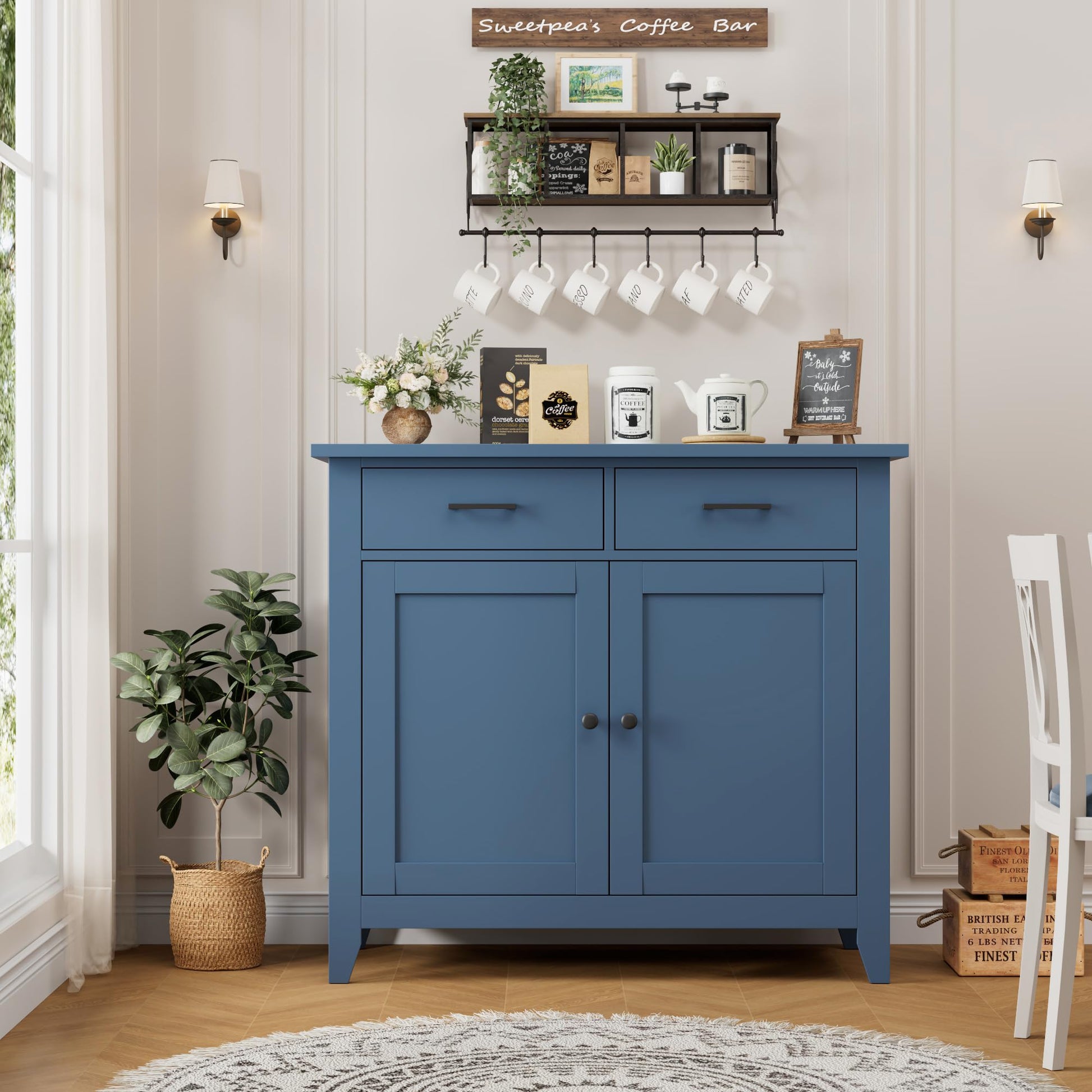 HORSTORS Modern Farmhouse Buffet Cabinet with Storage, Kitchen Sideboard Coffee Bar with 2 Drawers and 2 Doors, Floor Storage Cabinet for Living Room, Dining Room, or Bathroom, Blue