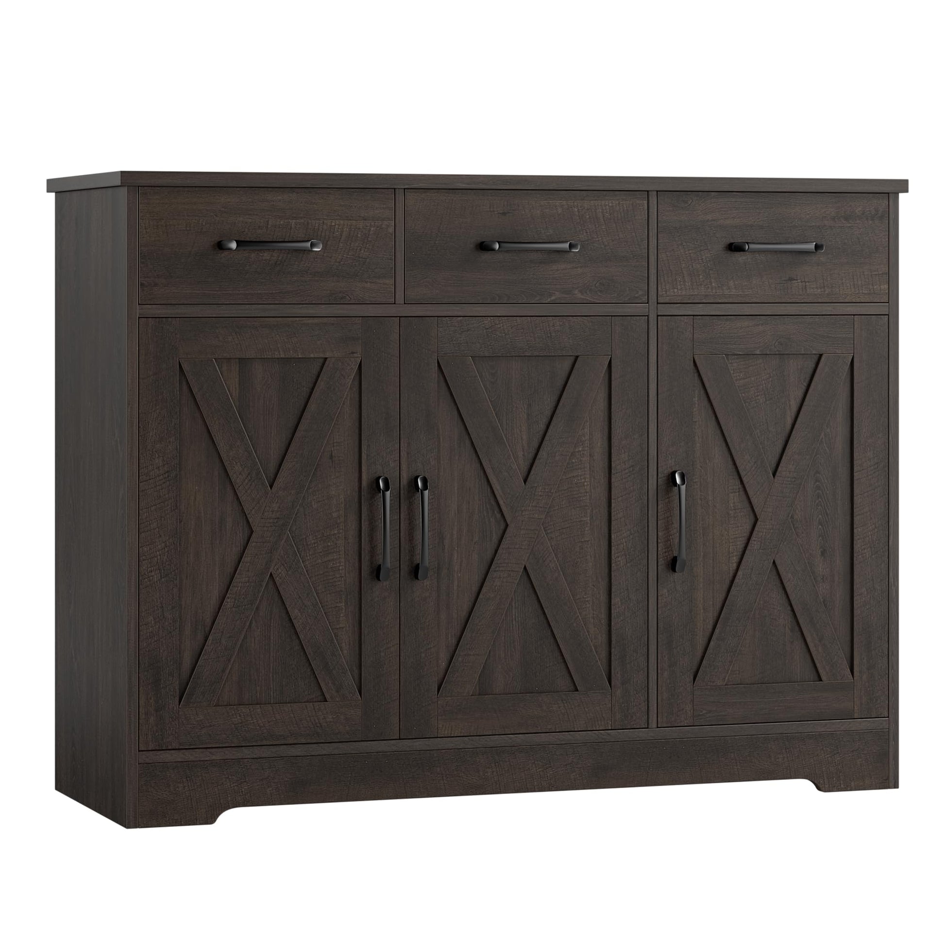 **HOSTACK Modern Farmhouse Buffet Sideboard Cabinet with Barn Doors, Drawers, and Shelves, Wood Coffee Bar Storage Cabinet for Dining Room, Kitchen, or Living Room, Dark Brown**