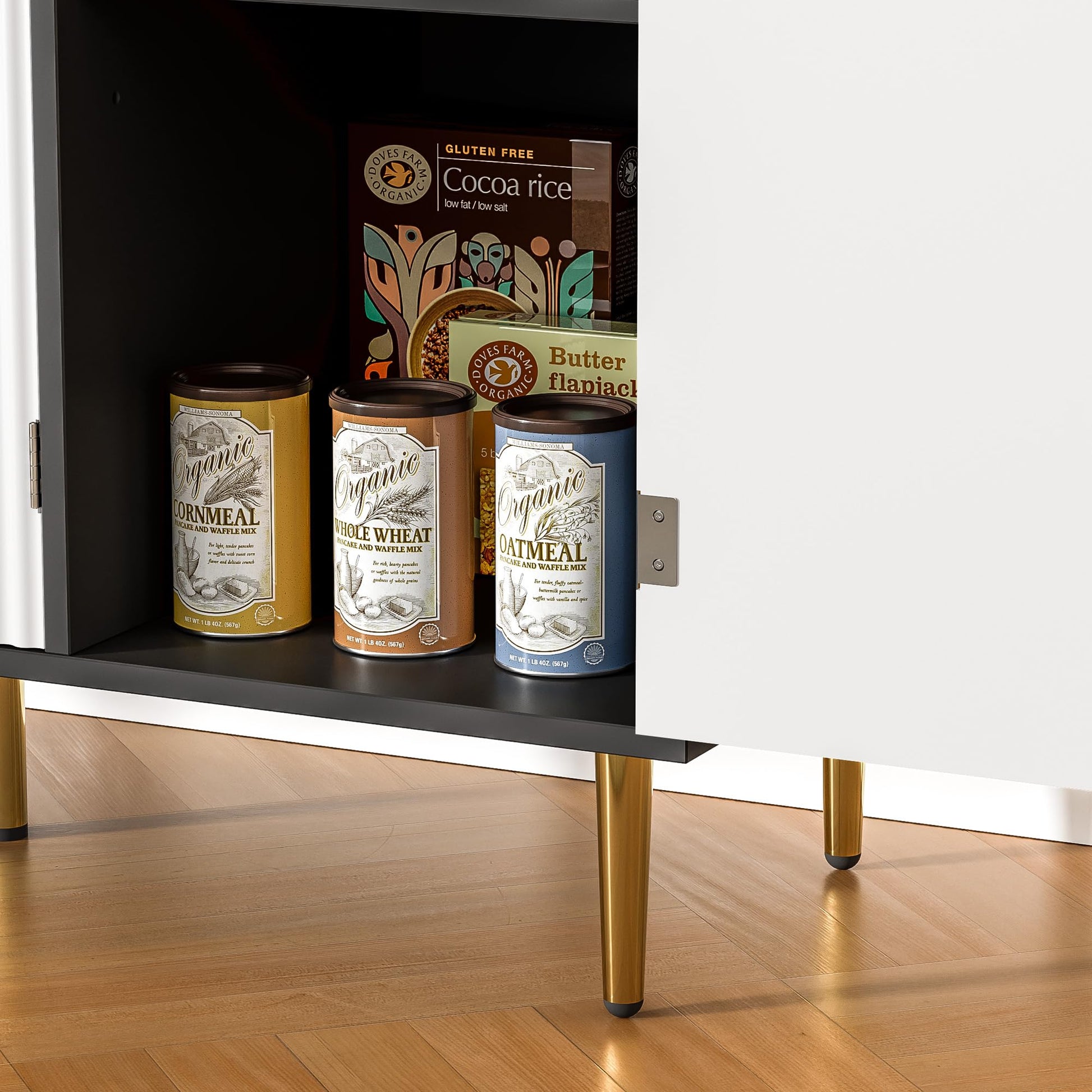 - 【Casual Luxury with Arc Wave Design】- The panels of this modern kitchen storage cabinet boast an arc wave design, radiating a refined yet effortless style while highlighting texture and allure. Enhanced with golden cabinet handles and feet, it effortlessly epitomizes the essence of casual luxury, elevating the style and sophistication of your space.