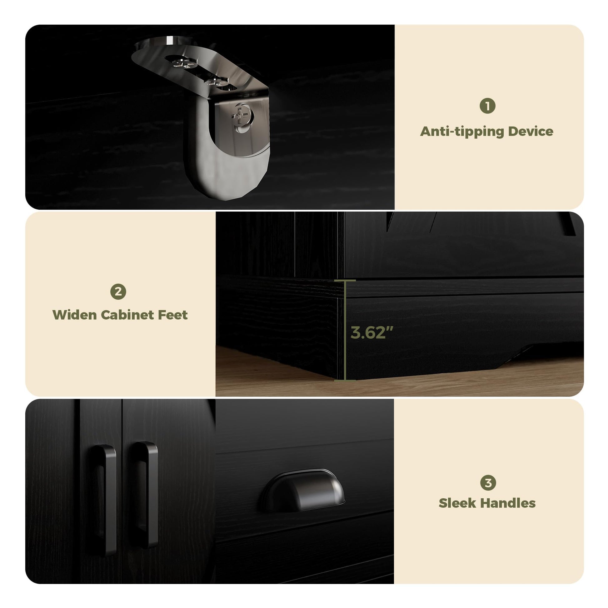 - Extra Storage Behind Concealed Doors: Make the most of the extra storage space of the two cabinet doors to store beverages, seasonings, red wine and other items. Keep your space tidy while accessing essentials in seconds.