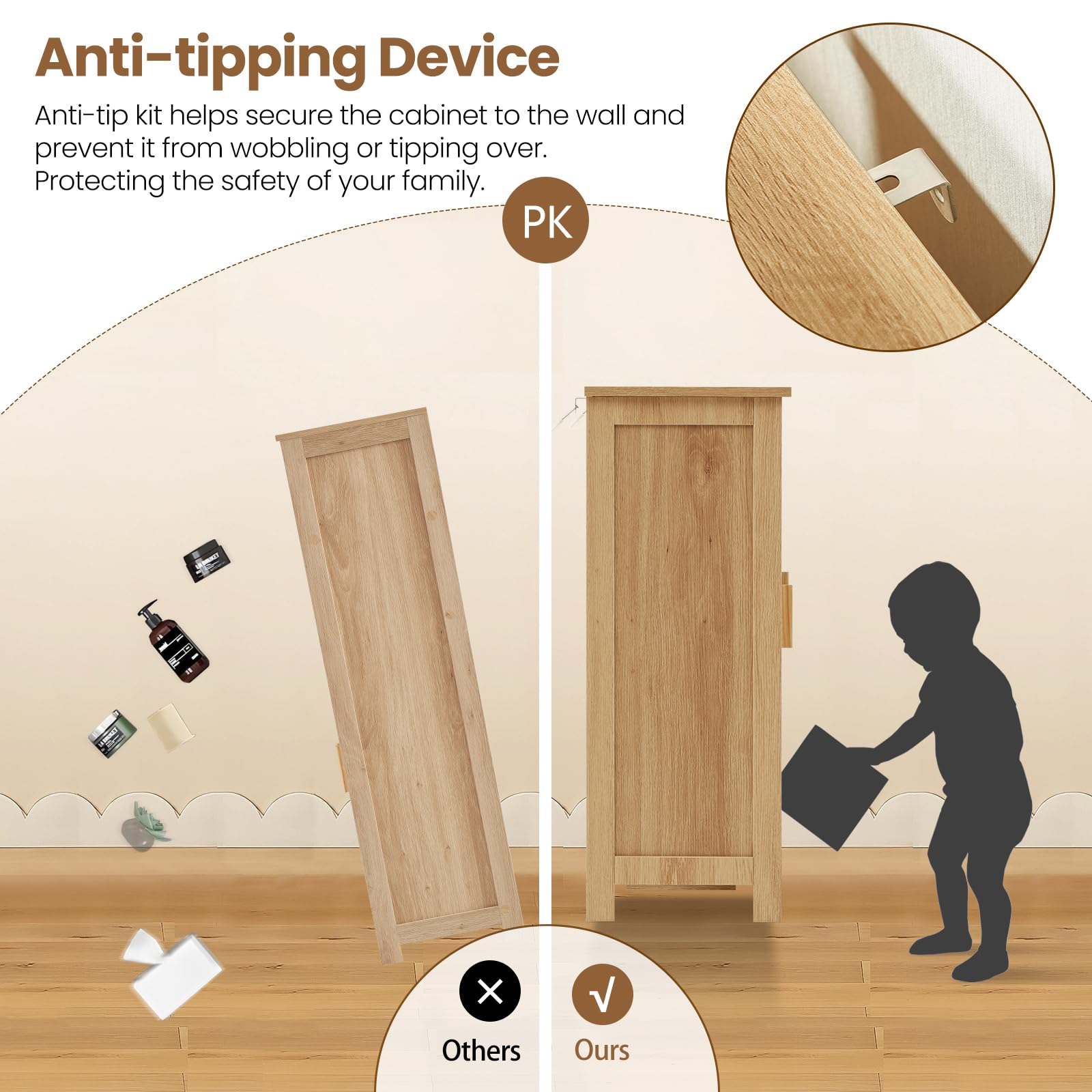 - ⭐Study & Safety: This storage cabinet is made of engineered wood for stable, no harm and odorless, which can bring a safe and healthy living environment for you. Well made in eco-friendly waterproof paint, suitable for wet environment. Meanwhile, an anti-tip kit helps secure cabinet to the wall and protect it from falling over accidentally.
