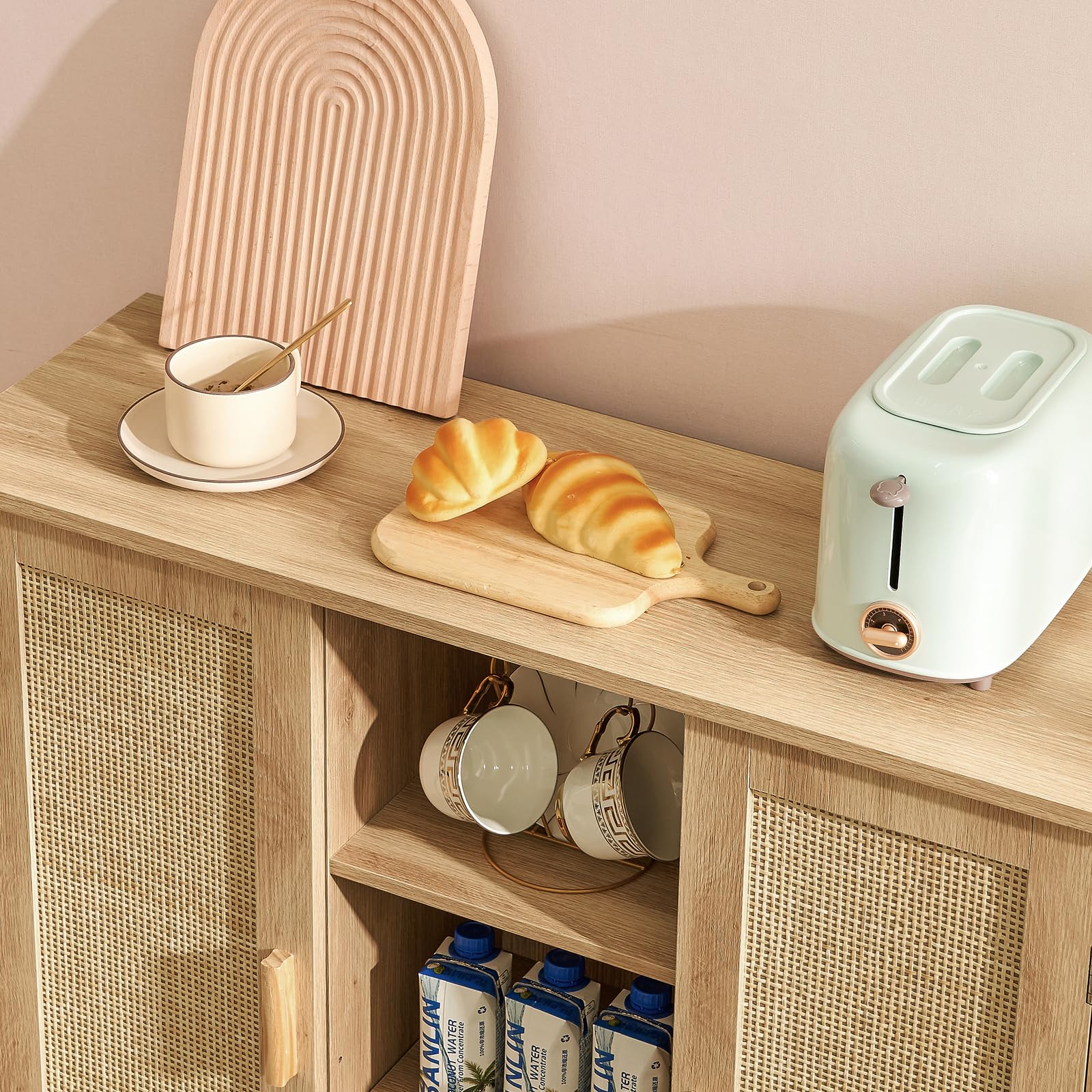 - ⭐Aesthetic & Practical Rattan Design: Don't miss out on picking a practical decoration for your home! The buffet cabinet features 2 stylish rattan doors, which not only can absorb moisture and heat, but also can bring beauty to your kitchen or dinning room, sparkle in any corner.