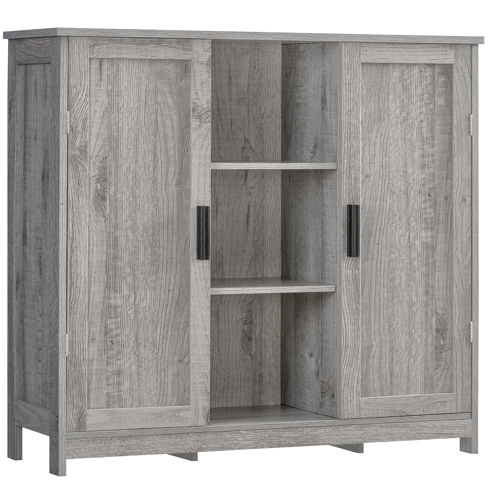 Storage Cabinet with 2 Doors and 4 Adjustable Shelves, Buffet Floor Cabinet for Living Room, Entryway, or Kitchen, Rustic Gray