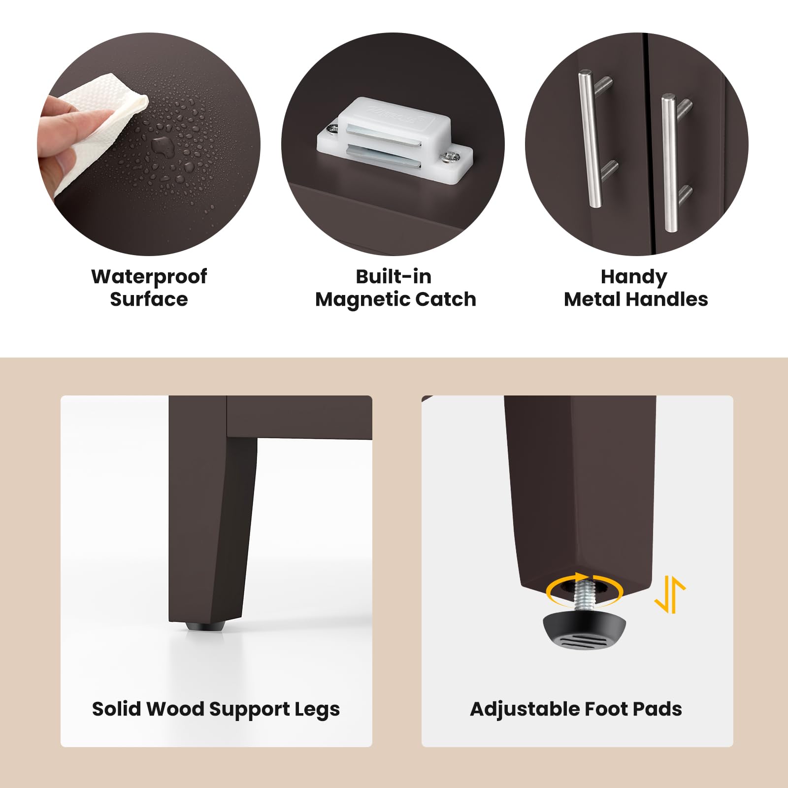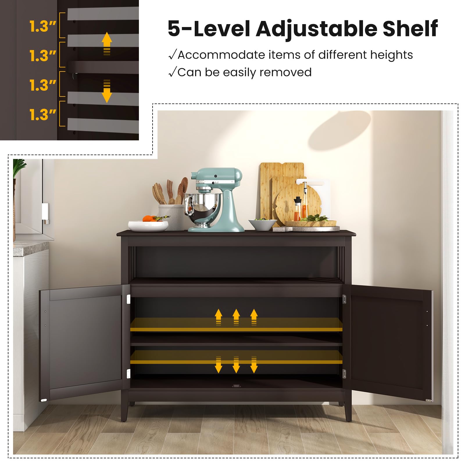 Freestanding Buffet Cabinet with Adjustable Shelf, Kitchen Storage Sideboard Console Table, 45" x 20" x 36", Brown