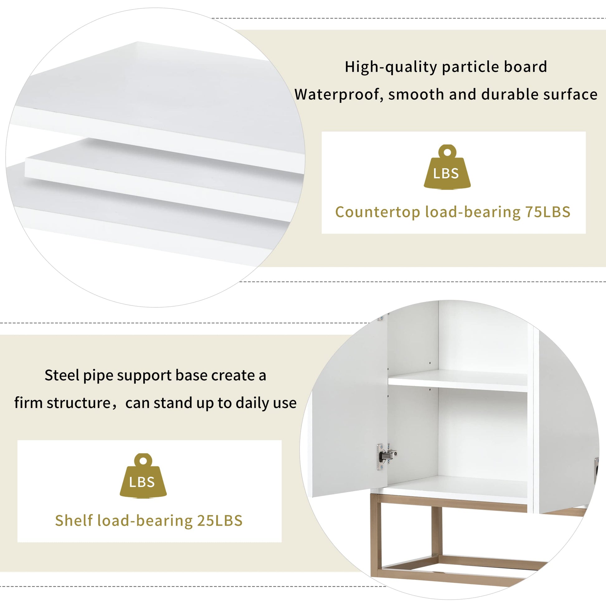 - Easy Assembly and Durable: High-quality particle board and steel pipe support base create a firm structure. The surface of the triamine sticker is waterproof, smooth and durable, the countertop load-bearing 75LBS. It can stand up to daily use even in the long run without losing its stylish charm. The package includes detailed instruction and all assembly tools.It is easy for you to put it together. Sideboard buffet cabinet overall dimensions: 47.2”L x 11.8”W x 31.5”H.