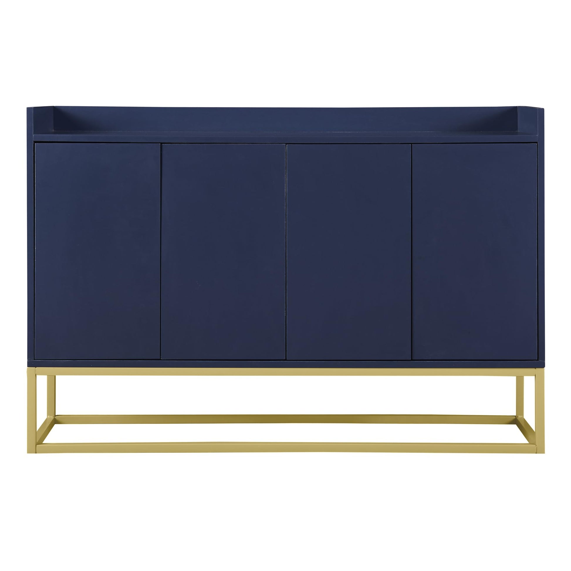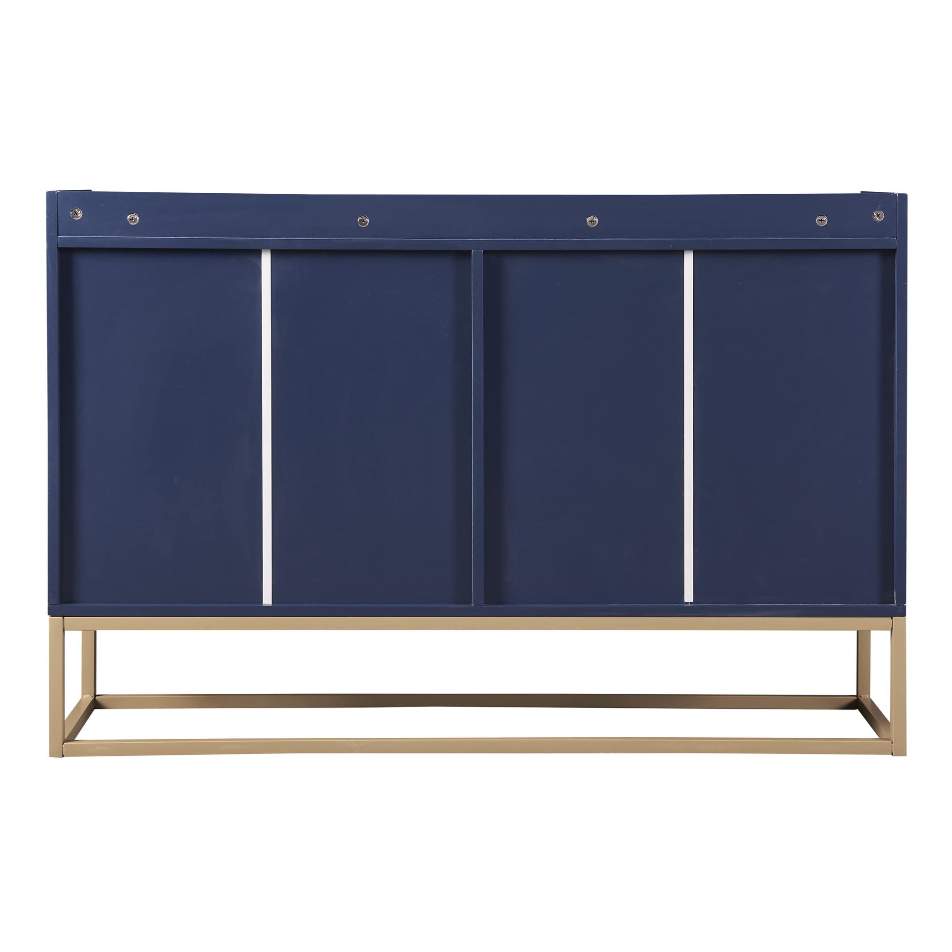 Modern Wood Sideboard Buffet Cabinet with Doors, Adjustable Shelves, and Metal Base, Kitchen Storage for Small Spaces, Navy Blue