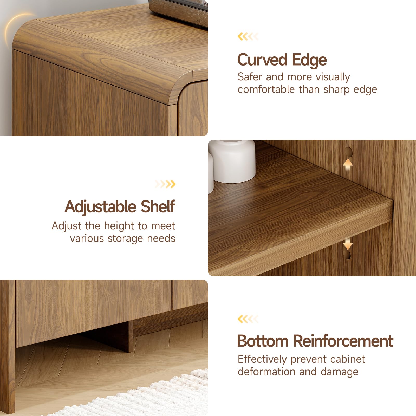 60" Curved Sideboard Buffet Cabinet with 4 Doors and Adjustable Shelves, Farmhouse Coffee Bar Storage for Living Room, Kitchen, or Hallway, Oak