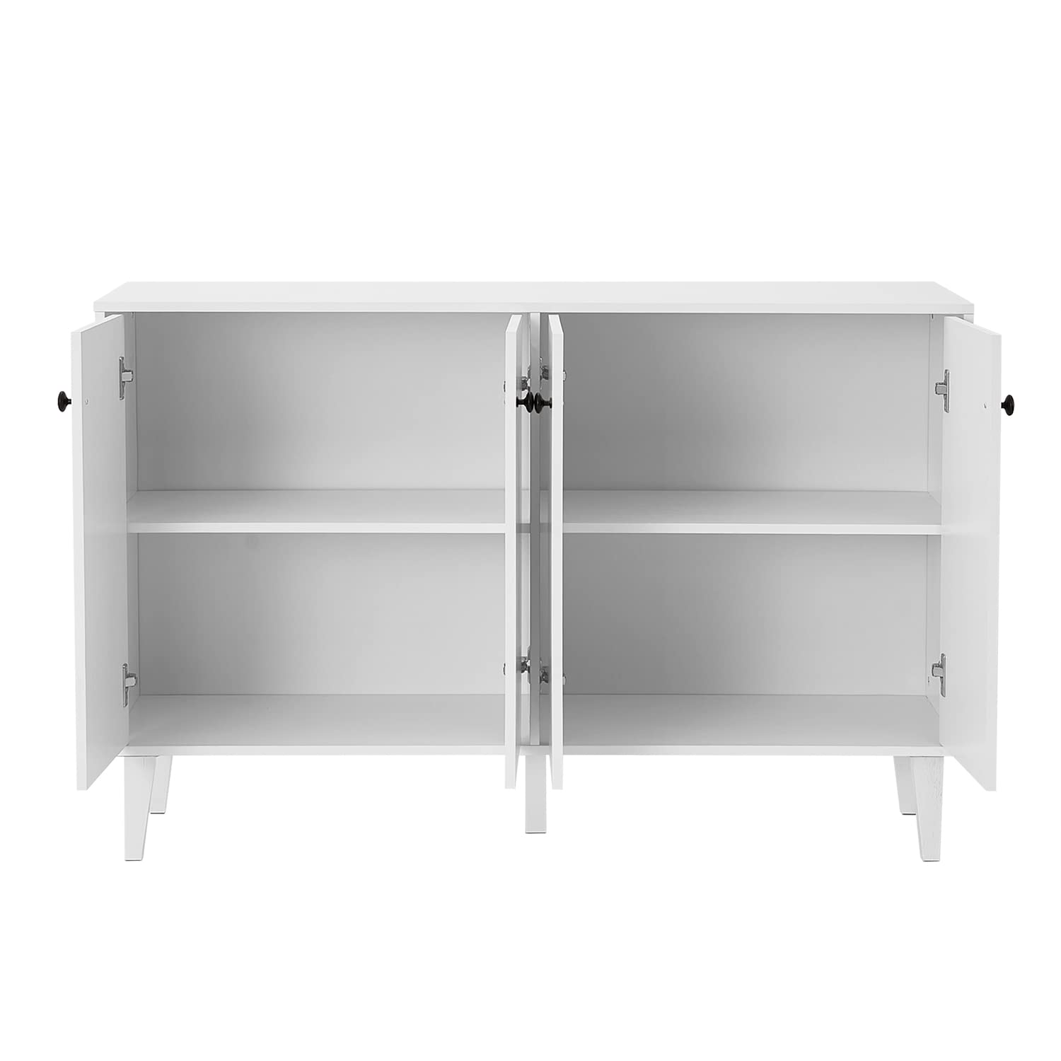 White Sideboard Buffet Cabinet with 4 Doors, Kitchen and Living Room Storage Console Table