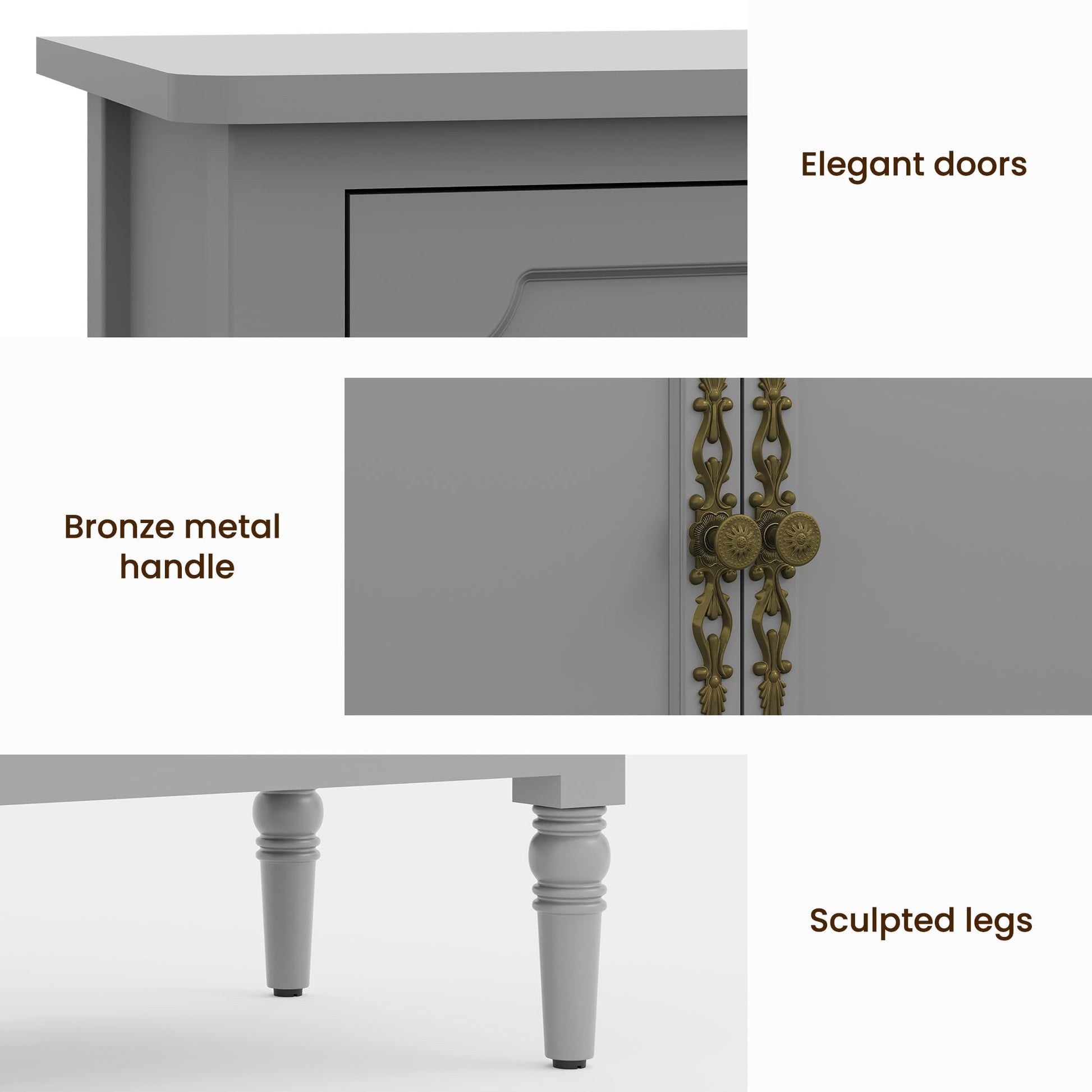 - 【Exuding Elegance & Sophistication】- This decorative cabinet features intricately carved antique bronze handles paired with graceful solid wood legs. Enhanced by a smooth eco-friendly finish and rounded corner detailing, it embodies refined authority from every perspective - whether admired from afar or examined closely, effortlessly elevating your living space with timeless grace and noble charm.