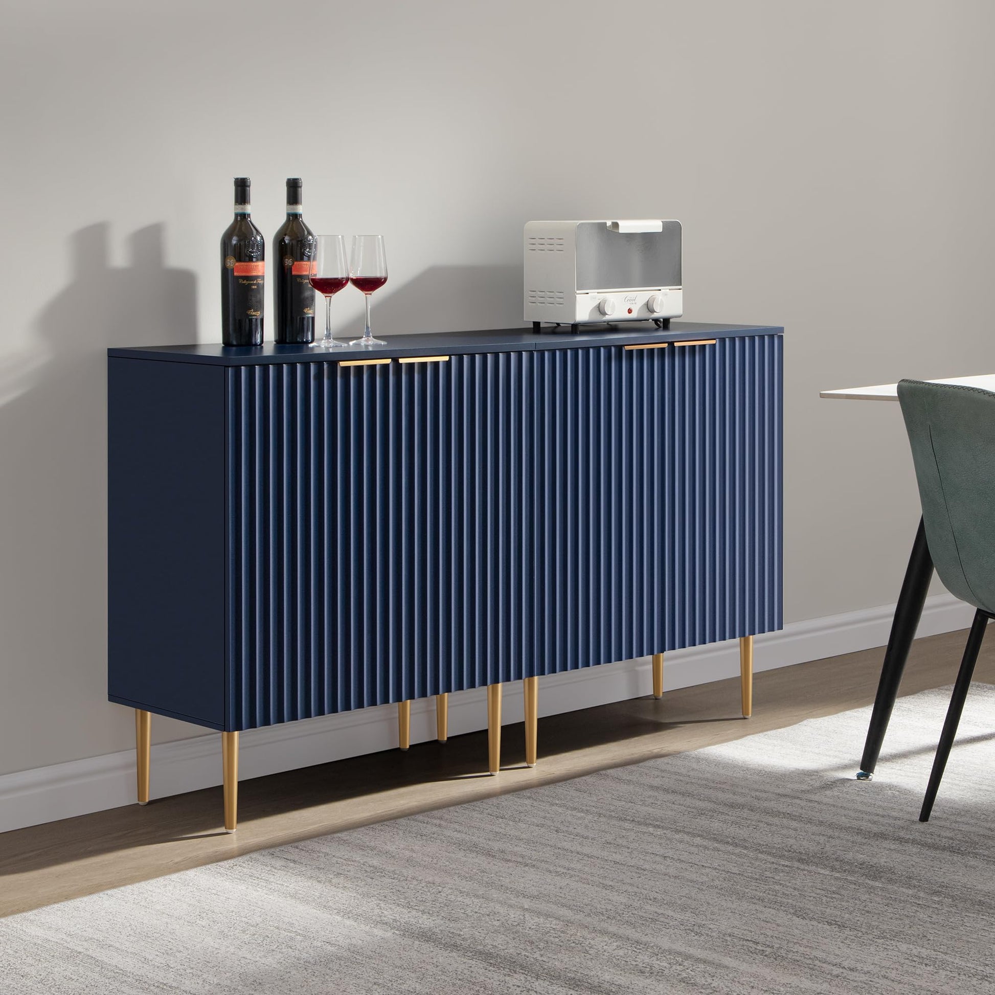 57" Modern Sideboard Buffet Cabinet with 4 Doors and Adjustable Shelf, Space-Saving Storage Console for Entryway, Kitchen, or Living Room, Navy Blue