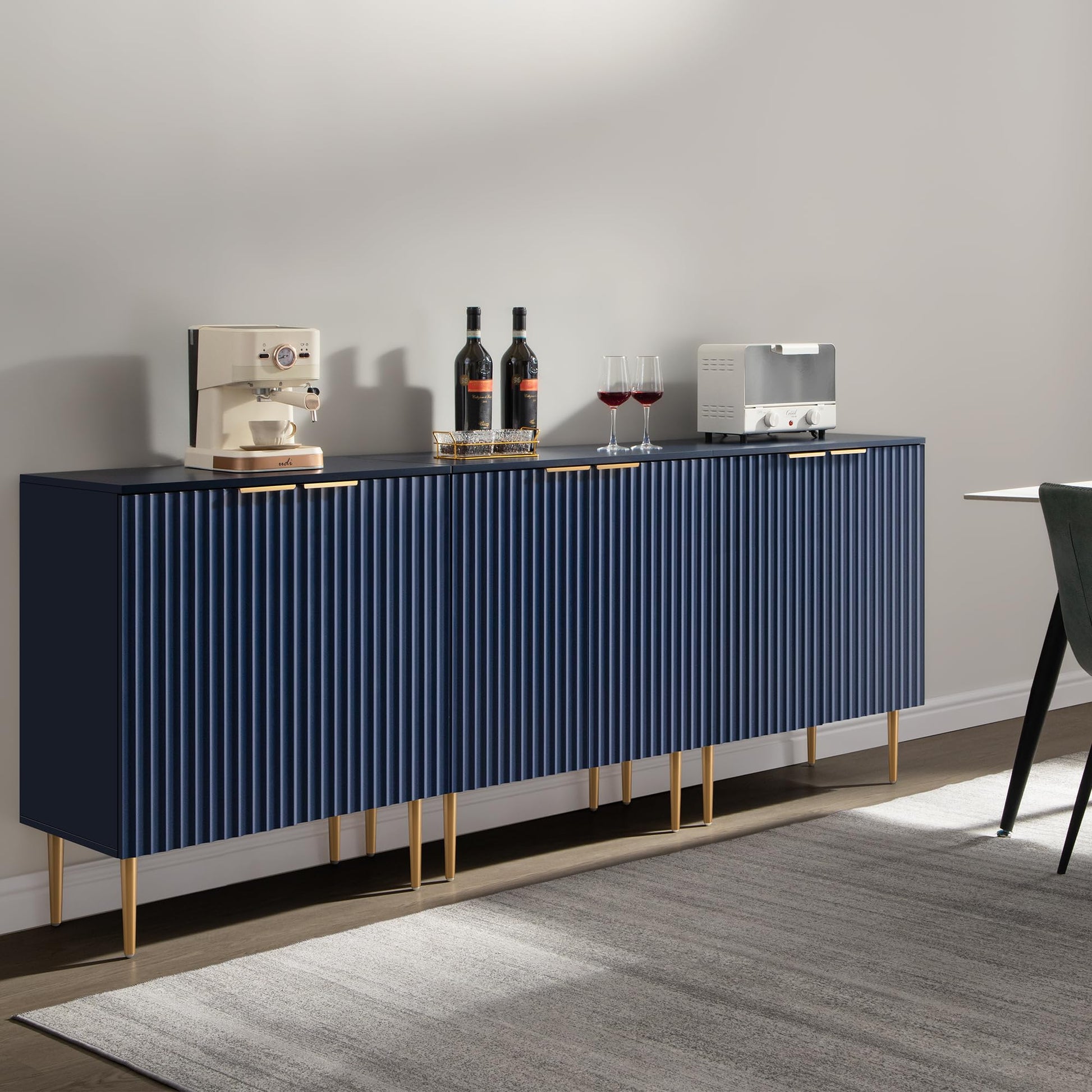 - 【A Mirror-Like UV-Cured Paint Finish】This modern buffet cabinet features our advanced high-gloss UV-cured spray paint technology, delivering a sleek, upscale finish that complements any home decor. The elegant fluted doors with gold handles create a perfect contemporary accent sideboard