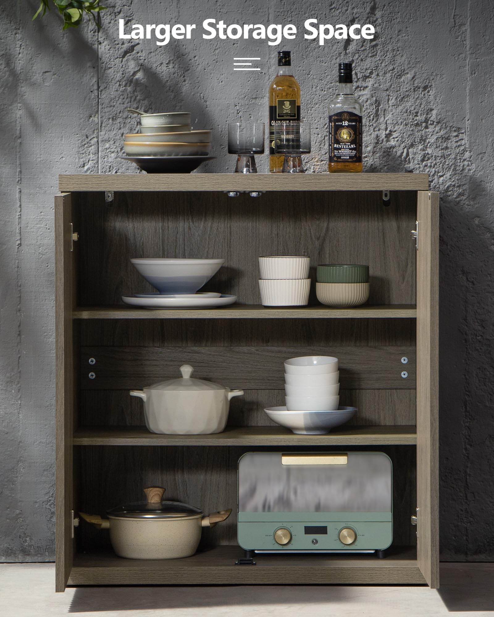 - 【Sturdy & Durable】- Crafted with a thickened high-quality board and scratch-proof, water-resistant surfaces, this buffet cabinet with storage is built to withstand the test of time. The frame is made of FsC-Certified engineered wood. Its sturdy construction ensures stability and durability, while the 2 adjustable storage shelves offer customizable organization for items of all shapes and sizes. You can rely on this sideboard cabinet to stay strong and intact, even with daily use.