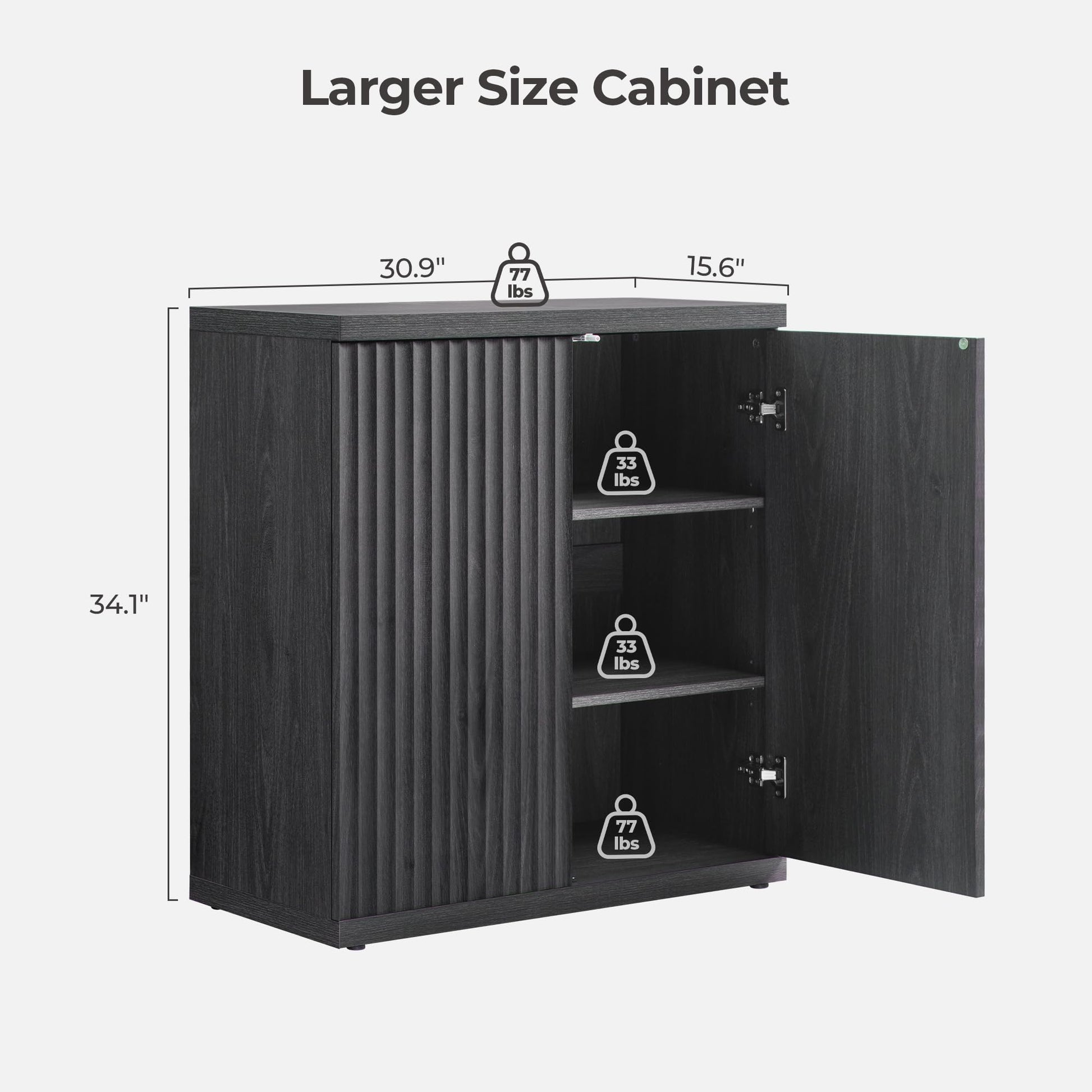 - 【Minimalist & Practical】- The storage cabinet boasts a minimalist profile and doors with a unique waveform panel, setting it apart from ordinary furniture pieces. Equipped with pop-up design doors that offer easy access to stored items while maintaining a sleek and seamless appearance. This distinctive design adds a touch of sophistication and style to your living space, enhancing the overall aesthetic appeal of your home decor.