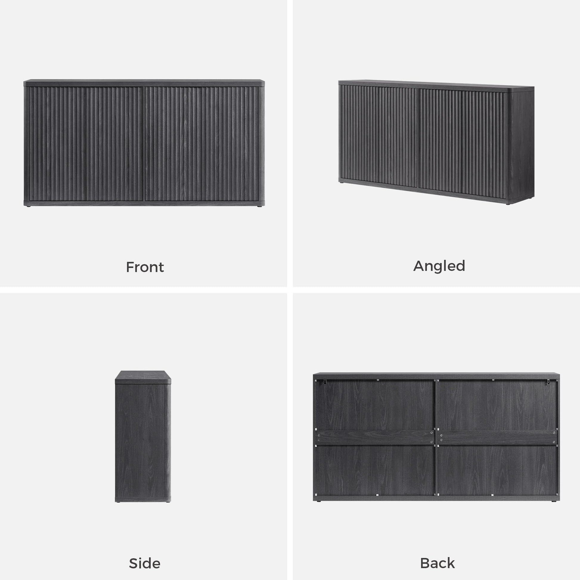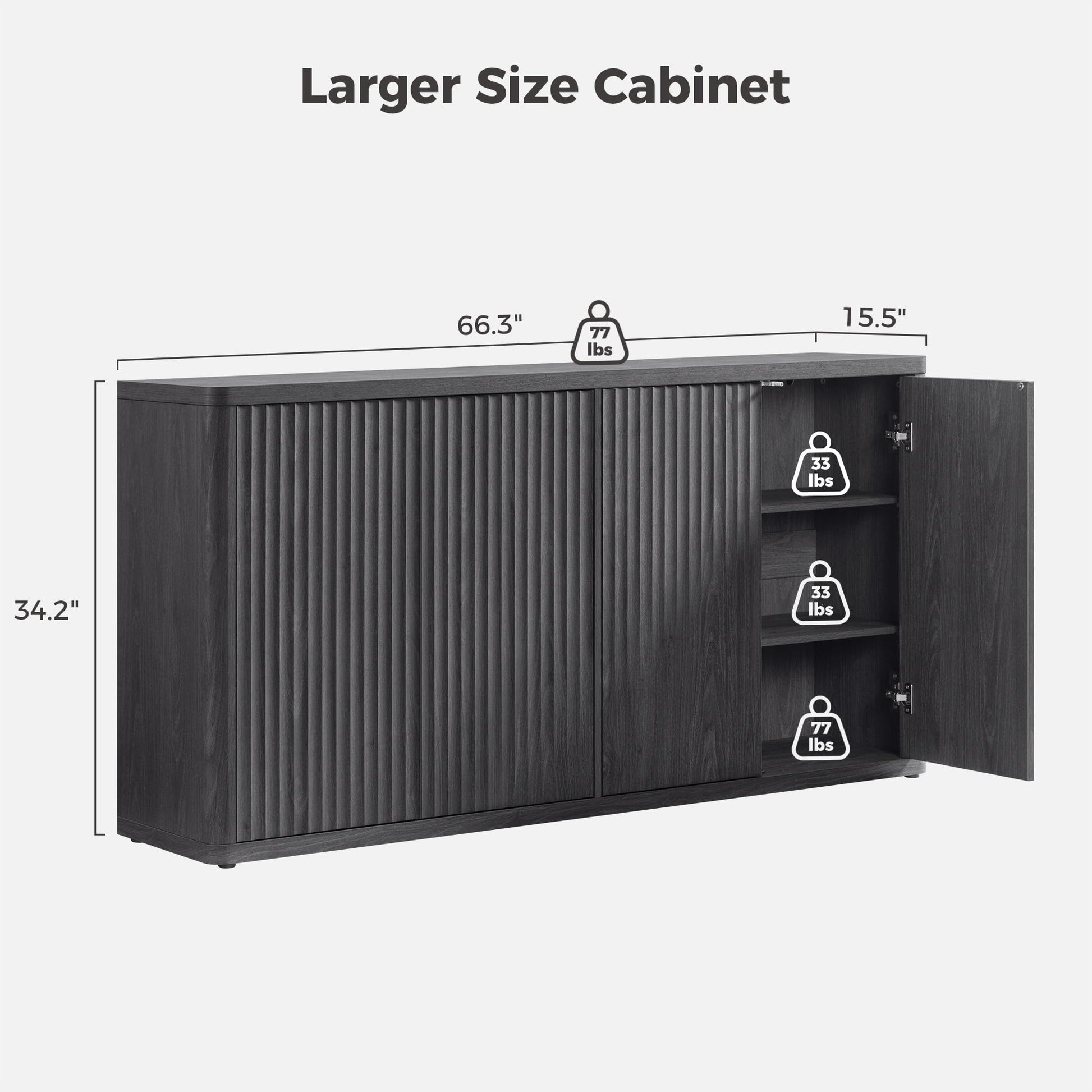 SICOTAS 66.3" Modern Fluted Buffet Cabinet with Storage, Accent Sideboard with 4 Doors, Wide Credenza Buffet Table Media Console Cabinet for Entryway, Living Room, Kitchen, Dining Room, or Hallway