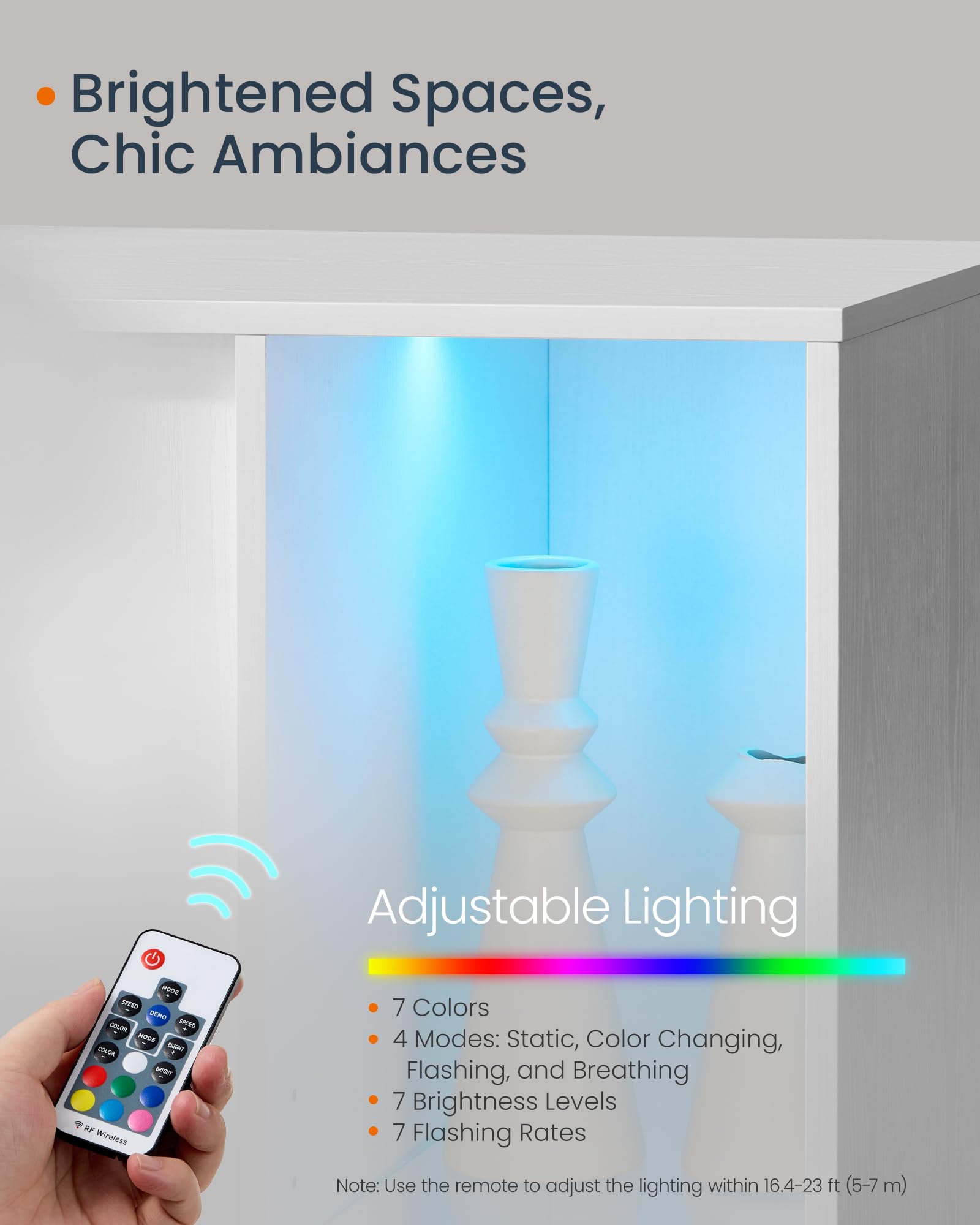 - 【TO STORE, TO DISPLAY】This buffet cabinet fulfills both storage and display functions. The top of the open compartments boasts remote-controlled RGB lighting that cascades through the glass shelf, illuminating your items in a captivating ambiance