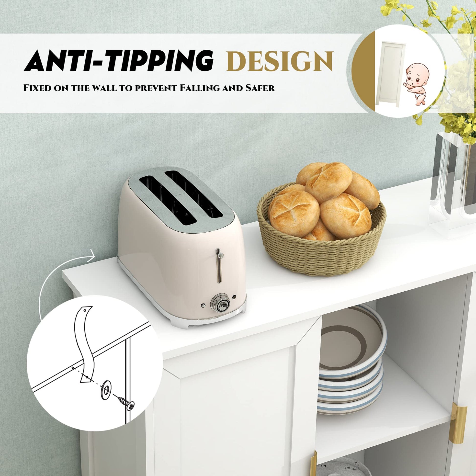 - Easy assembly❥❥❥Each skinny buffet cabinet is shipped with an instruction manual included in the packaging, which is clear and easy to understand. Additionally, each component is numbered for faster assembly. No extra time is needed, even one person can easily assemble white sideboard cabinet.