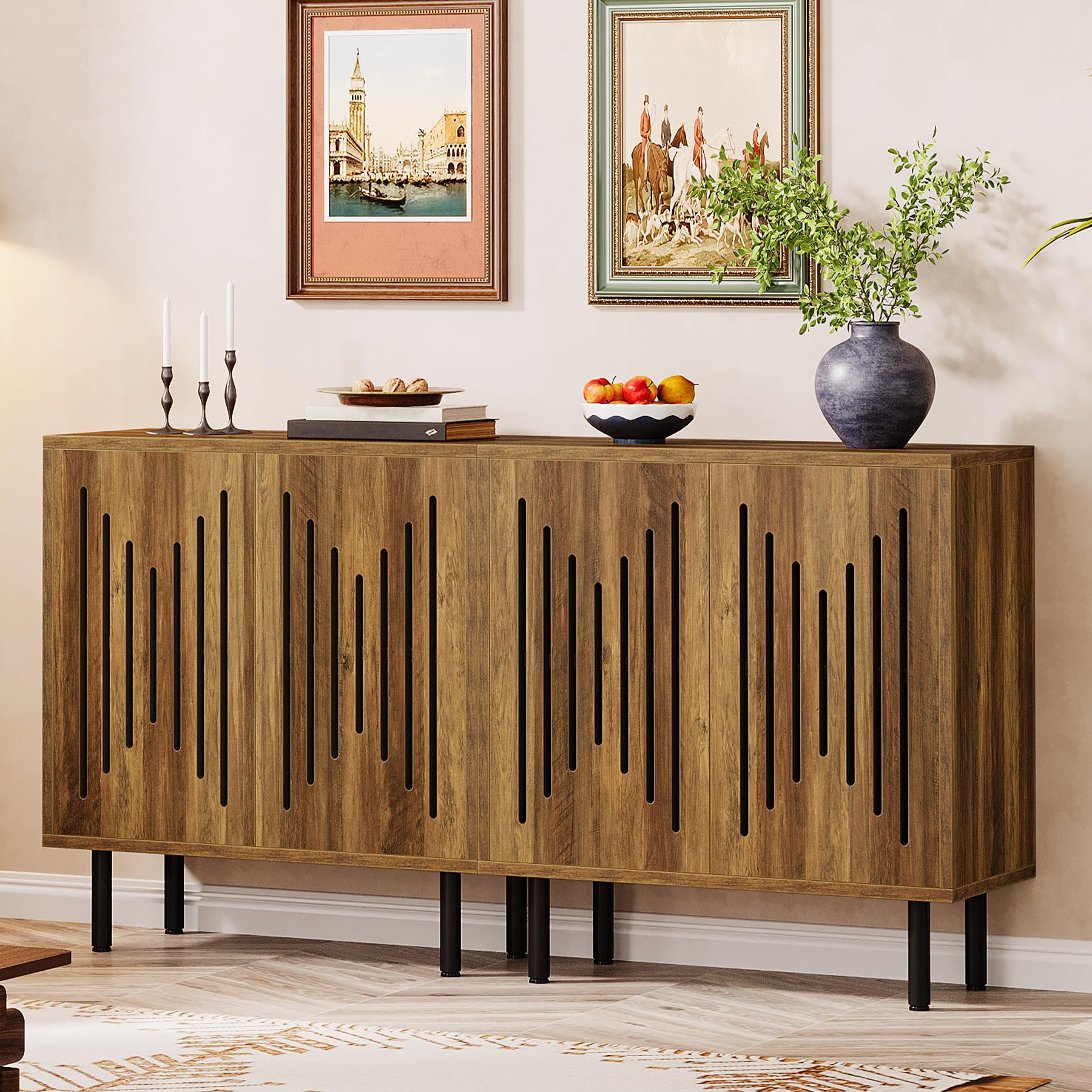 Tribesigns Set of 2 Buffet Sideboard Cabinets with Storage, 59" Long Sideboards with Adjustable Shelves, Modern Accent Storage Cabinets for Living Room, Rustic Brown