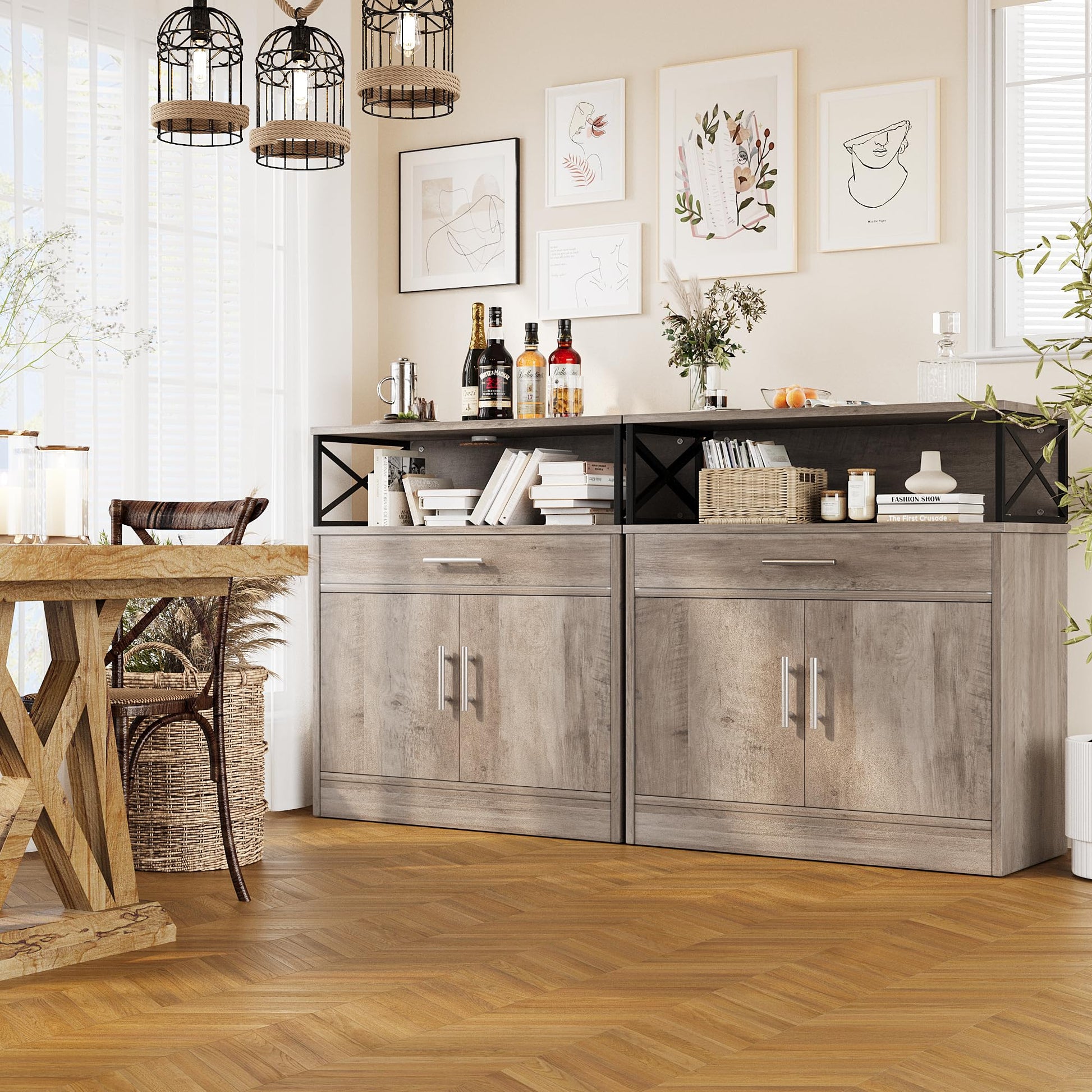 - VERSATILE STORAGE: This sideboard buffet cabinet provides enough storage space with drawer, doors and open shelf to to display and organize your kitchen items. The shelf inside is 3-level adjustable to meet various storage needs.