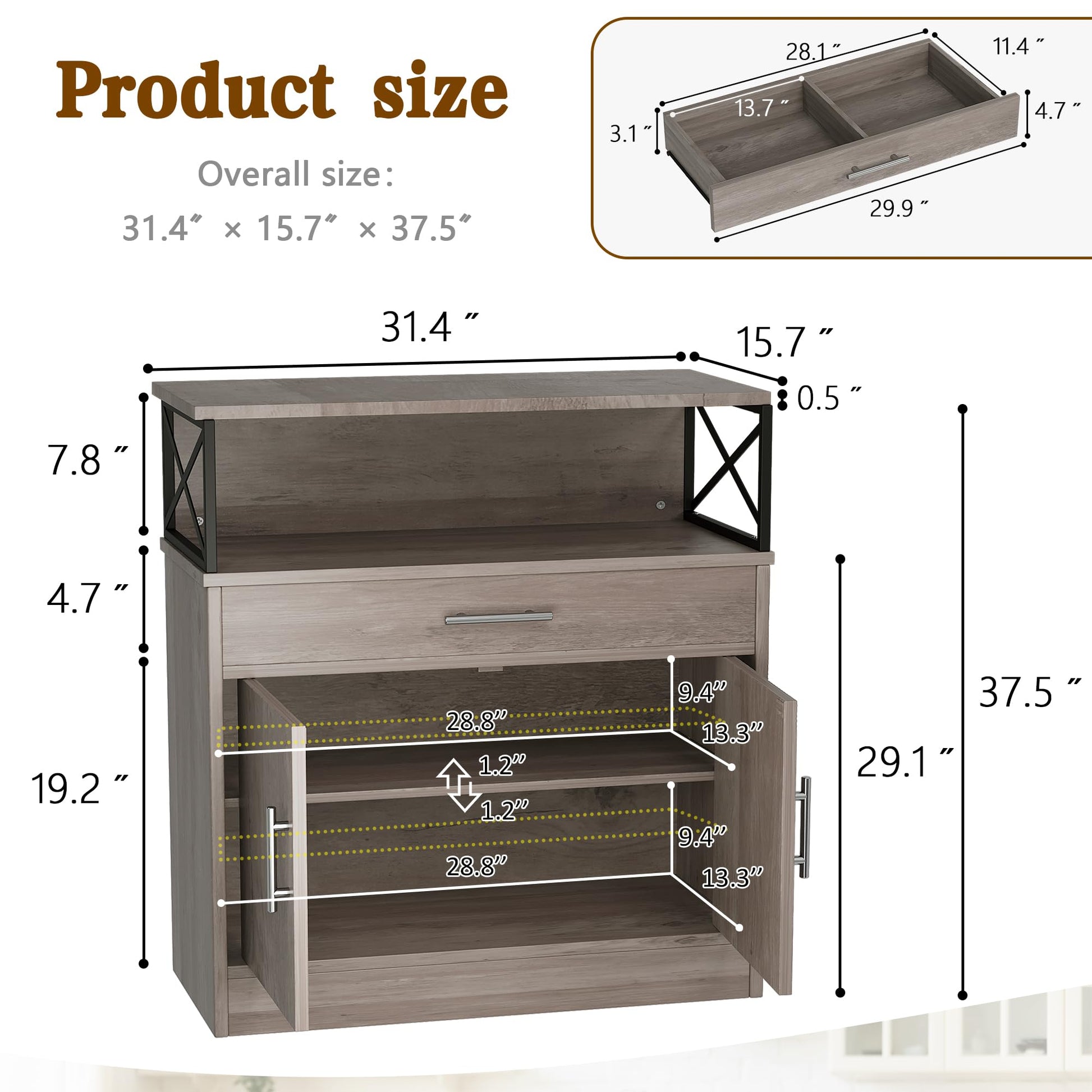 31" Modern Sideboard Buffet Cabinet with Adjustable Shelf, Wood Farmhouse Coffee Bar Storage for Kitchen or Dining Room, Ash Grey