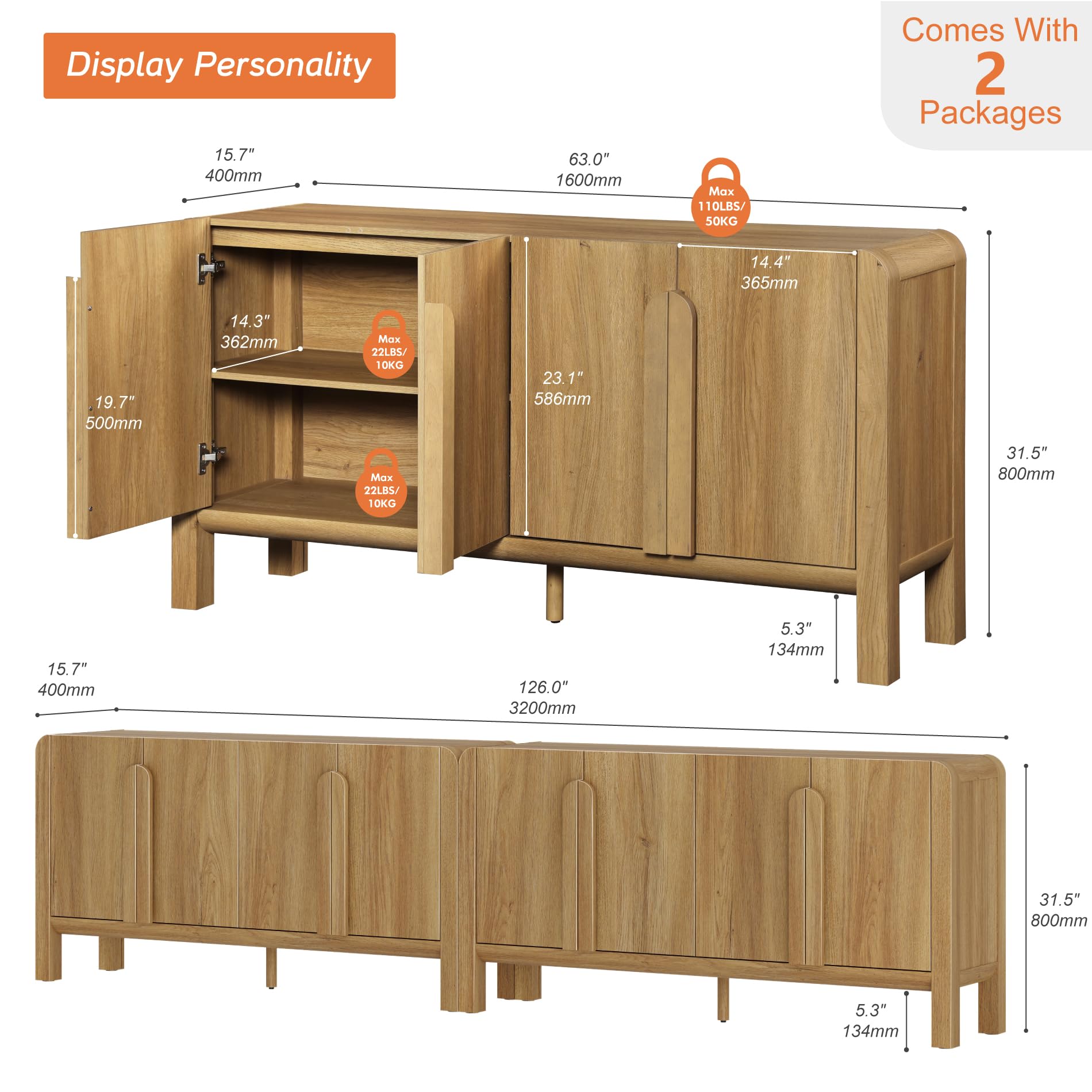 - Easy Assembly & Reliable Support: As a kitchen buffet cabinet or large buffet cabinet, assembly is straightforward with labeled parts and clear instructions. Our customer support is here to help—before and after your purchase.