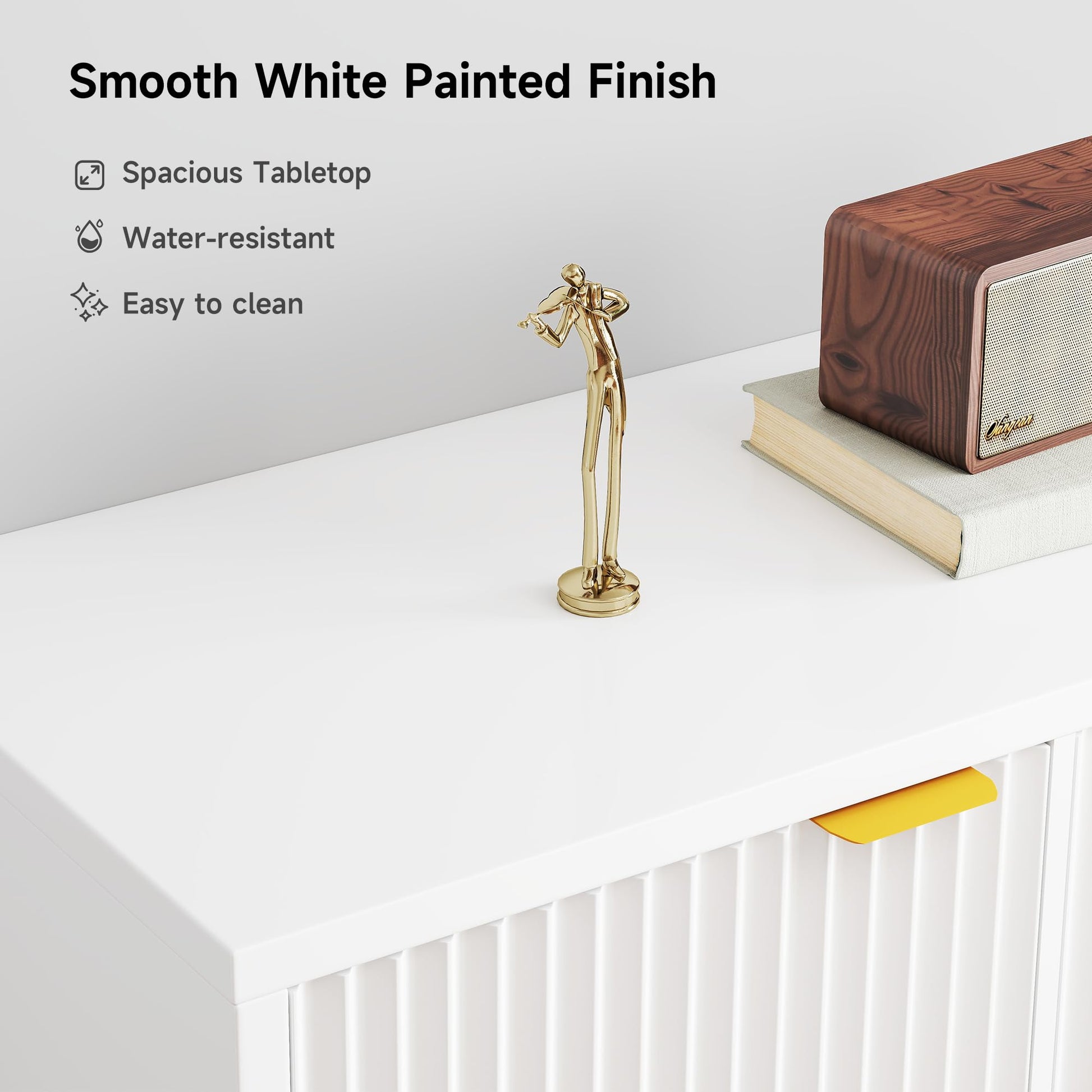 - Wave Grooved Panel Design: The unique fluted panel matches the white spray-painted finish of the fluted buffet cabinet with storage, creating a unique and elegant beauty for the fluted sideboard. The metal handle adds a touch of luxury and enhances the overall beauty