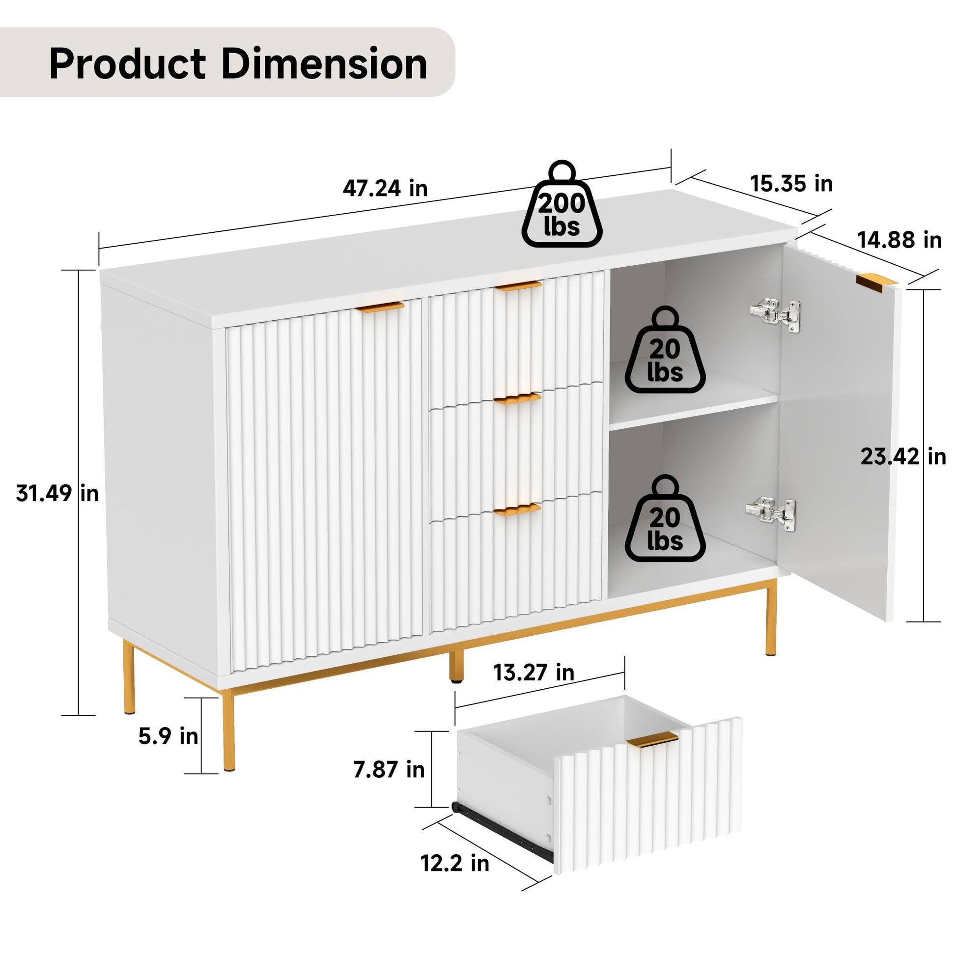 - Ample Storage: The fluted sideboard buffet cabinet with storage features 3 large drawers and 2 cabinets with doors, providing ample storage space for your home essentials while keeping your area organized and clutter-free